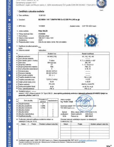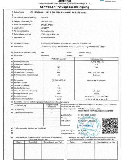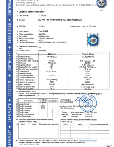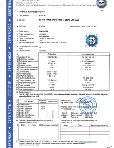 - Zváranie pomocou technológií TIG,MIG, MAG,